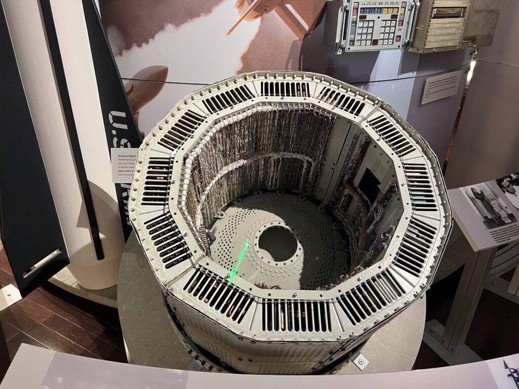 Among all the objects, the one that stayed with me was a guided missile’s early onboard computer, its “brain.” Designed to calculate direction and altitude mid-flight, it marked a turning point in computing: the moment intelligence left the desk and entered motion, speed, and uncertainty. Yet what captivated me wasn’t just its historical importance, it was its personality. The machine looked uncannily like a front-loading washing machine: cylindrical, metallic, and stuffed with wiring that resembled tangled laundry mid-spin. It felt less like military hardware and more like a diligent character that once worked under immense pressure. This small moment of resemblance made the object unexpectedly human, and strangely endearing.
